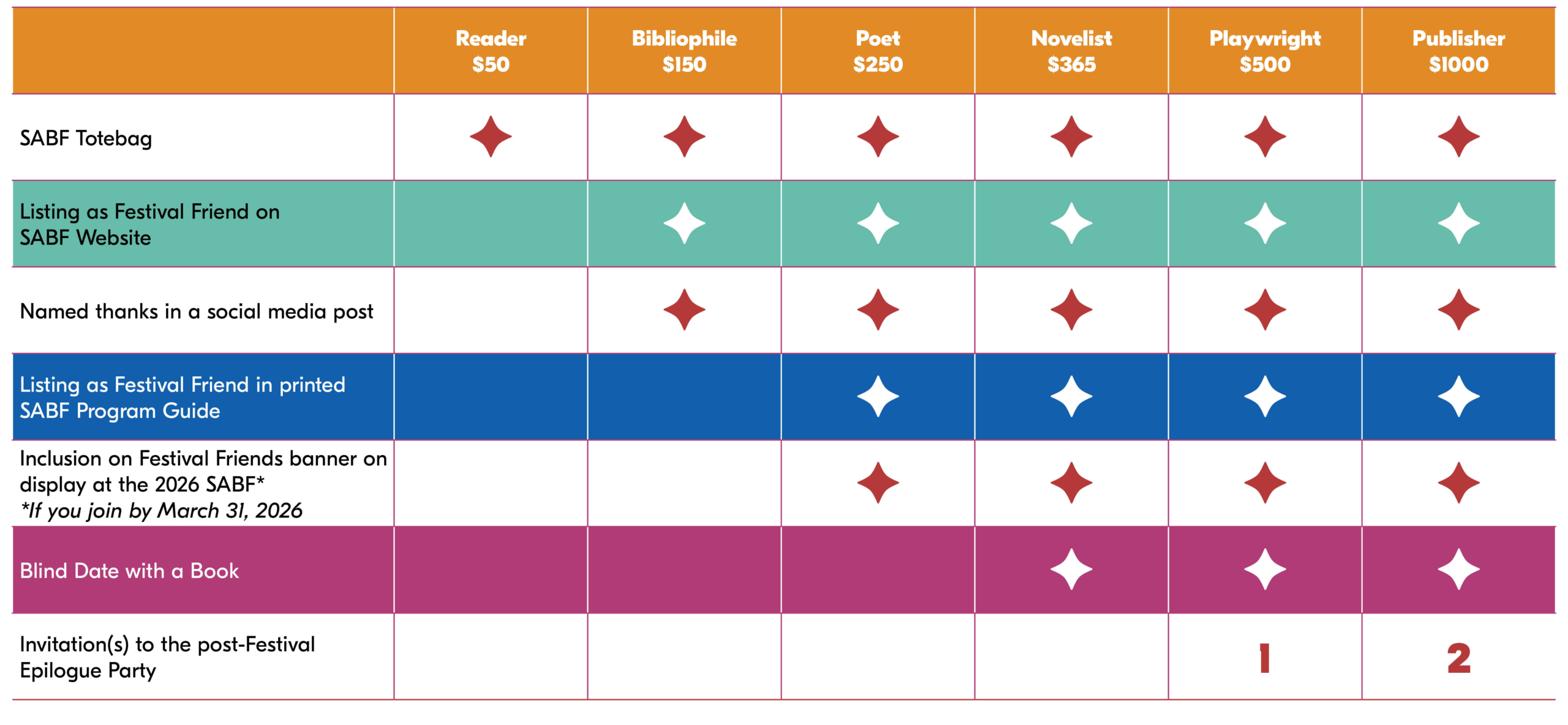 SABF reserves the right to update Festival Friend benefits at any time during the course of a cycle.